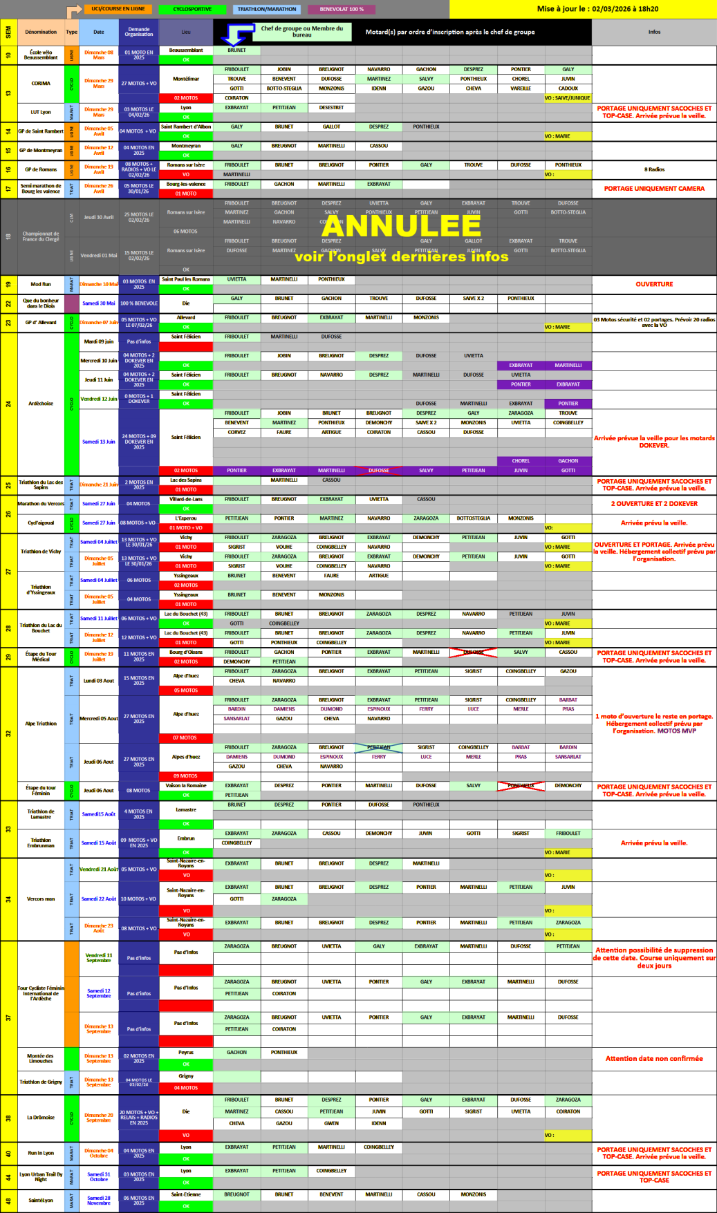 - Ardéchoise médical le 13 juin (case violette du planning)