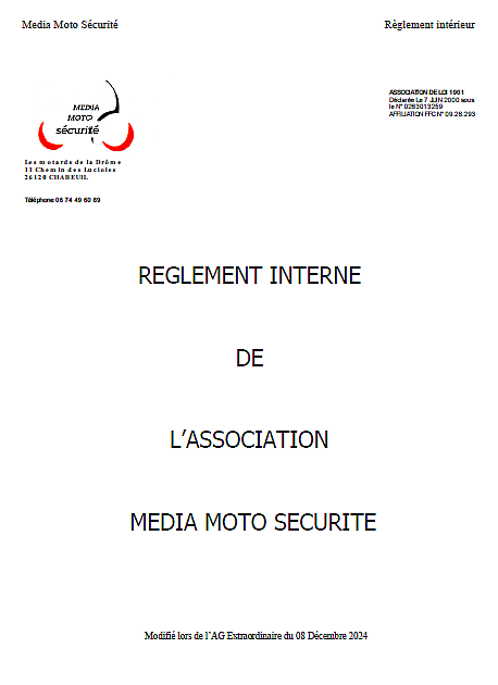 Le Réglement intérieur de l'Association est disponible dans l'onglet "Réglement Interne"