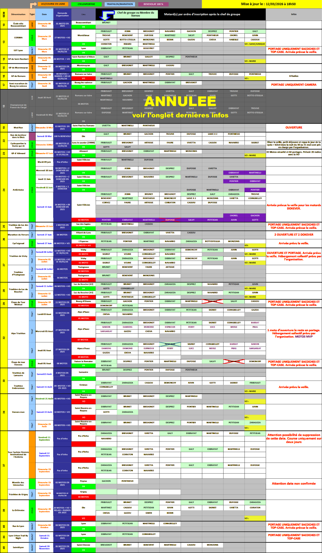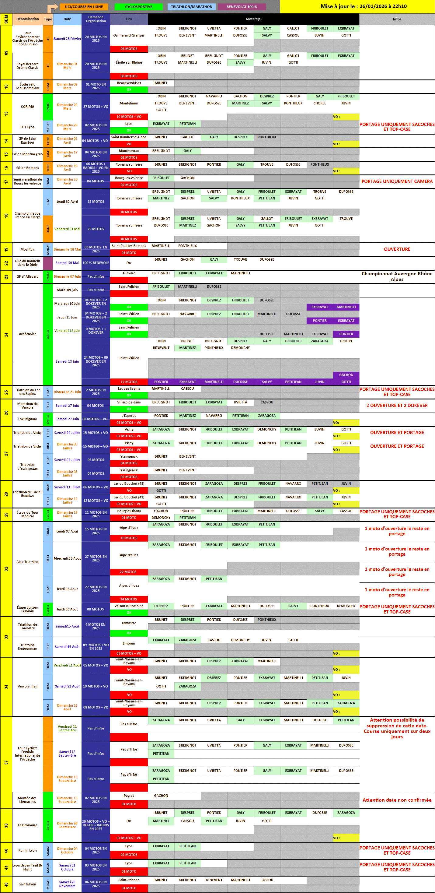 Attention certaines dates ne sont pas indiquées sur le planning et d’autres ne sont pas confirmées par les Organisateurs.